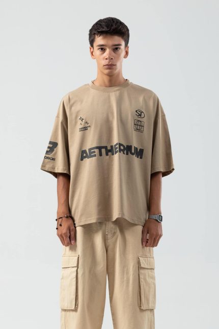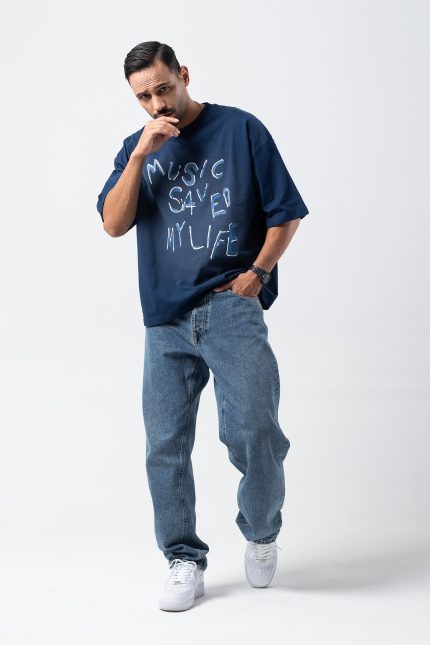 در این مدل، تی شرت بزرگتر از سایز استاندارد طراحی شده و ظاهری گشاد و ترندی دارد.